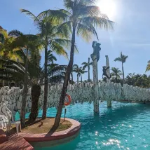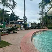 We stayed here for 8 nights over 2 stays. Our room faced west and overlooked the pool and had a view of the ocean. They have a beautiful, clean safari themed pool with water slides and large swimming area. The room was spacious and clean. My only criticism is that there are only a couple of useable plugs to charge electronics. The morning breakfast in the Shang Garden restaurant is excellent. The selections were all delicious and the staff are all so polite and attentive. I’m told that the hotel can be busy on the weekends with family weekenders but they handle it easily. Lastly, all the hotel staff are unfailingly polite and helpful. I would highly recommend Tanza Oasis.