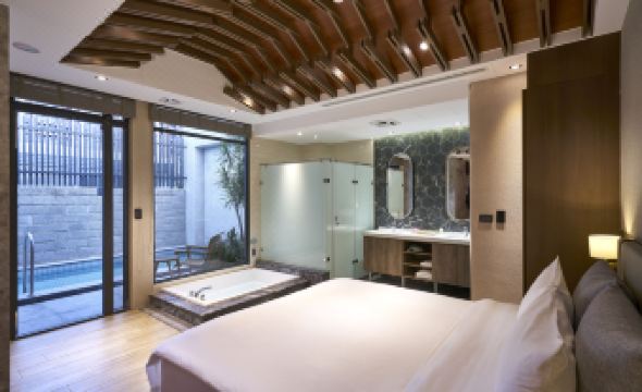 Because my mother was coming to visit, I booked a double room on Trip.com for two adults and one child, specifically for the huge bathtub.