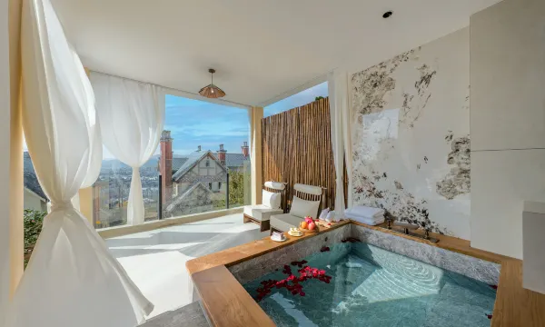 Muxin Courtyard Leisure Tub Double Bed Room With Private Hot Spring (with Full Smart Home, Derucci Mattress, Hansgrohe Bathroom, And Dyson Hair Dryer)