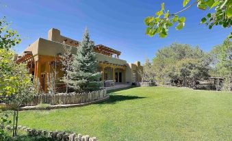 For the Santa Fe enthusiast! Our home sits on 4 acres 9 minutes from the Santa Fe Plaza. This 7 bedroom 5.5 bath estate has a swimming pool and a recirculating pond/stream. An enclosed gated estate includes a 4 bedroom 3.5 bath main home and a 1,527 sq. ft. 3 bedroom 2 bath casita. Three living areas in the main house ensure space for entertaining. Our home has a gourmet kitchen and a full second level owner's ensuite. On the opposite side of the property we have several animals in our barn including Llama, goats, pigs, chickens, rabbits and other beautiful animals.About pets:No pets allowed.About checkOut:Check out before 10:00 AM.About children:Children allowed: ages 0-17.About checkIn:Check in after 4:00 PM.About smoking:Smoking is not permitted.About events:No events allowed.