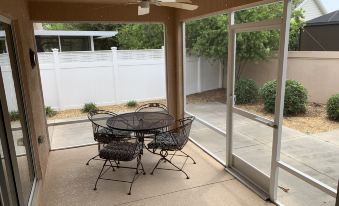 You'll feel welcomed and relaxed as soon you open the front door to your home away from home. This home is beautifully decorated with a bright open floor plan. The kitchen is complete with everything you'll need to prepare and serve meals. The Living room offers plenty of comfortable seating if you're entertaining friends & family or just enjoying your favorite television shows on the flat screen TV. The master bedroom has a comfortable Queen size bed, large walk in closet, and a private master bath. The master bath offers a walk in shower. The guest bedroom has a comfortable Queen size bed for your guests to feel at home. The bedrooms and both bathrooms are set up with extra towels and linens. It has a private courtyard to entertain guests. It's also a great place to sit and relax while enjoying a BBQ at the end of a busy day of activities and to invite your new friends over for dinner before heading off to dance the night away!