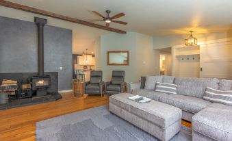 Upon entering the home you'll find a light-filled living space with wood burning fireplace, cozy seating and a big flat screen tv. The great room also includes a dining area with seating for 8 at the table and 2 more at the kitchen counter. The modern kitchen has everything you need to prepare all of your favorite meals with a gas cooktop, stainless steel appliances and a Keurig (bring your favorite pods).
