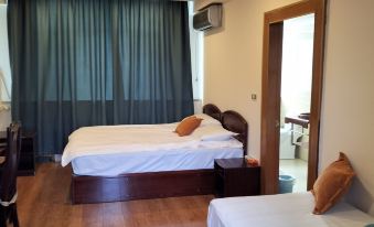 看麻將房是寫的兩張一米八的床,帶着孩子就定了,結果到了房間以後發現是三張一米的單人床,還不在一個位置,拼都沒法拼,老闆説去哪兒網那個是瞎寫的,衹好換了另一個房間,雙人床有了,但床上衹有一個枕頭一個薄單人被,家裡疊被子的方法疊的,顯然有人睡過。去讓服務員換一下,她拿了一個床單被罩直接給我讓我自己套我也是無語了,我説不會,她説你在家不套被子嗎?真的是無語了😓結果新給的床單上還有毛髮!!!被子很薄,想開空調,發現沒裝插座,衞生間反味兒令人做嘔