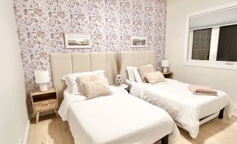 3 bedrooms: 3 single beds 1 queen bed and 1 double bed