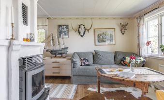 Small, beautiful house "Lidelund". 3 km from the centre of Tingsryd, 47 km from the centre of Växjö, 10 m from the lake, direct access to the beach, in the countryside. For shared use: natural state property 4'000 m2, garden (not fenced) with trees, meadow. Bathing jetty. Private: property 1'000 m2. Patio, garden furniture, bathing jetty. In the house: sauna (extra). Washing machine (for shared use, extra). Available: boat (extra). Parking on the premises. Supermarket 3 km, bus stop 120 m, railway station "Lessebo" 33 km, ferry "Helsingborg" 185 km, sandy beach 1 km, grass beach 60 m, indoor swimming pool 3 km, bathing lake 20 m. Golf course (18 hole) 45 km, cross country ski track 2 km, fishing possibilities 10 m. Please note: fishing [permit required] (extra). The owner lives on the same property. "Lidelund", 1-room house 33 m2. Practical and beautiful furnishings: living/sleeping room with 1 bed (120 cm), 1 double sofabed, open-hearth fireplace and dining table. Small, open kitchen (oven, toaster, kettle, microwave, freezer, electric coffee machine). Shower/WC. Electric heating. View of the lake. Facilities: children's high chair, baby cot. Please note: non-smoking house. Smoke alarm, fire extinguisher. Freezer approx. 80 l. Instead of an enclosed bedroom, some sleeping areas are located in an open-plan area (gallery, alcove, etc.).