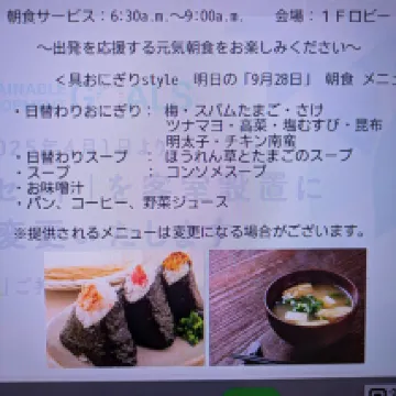 Everything else was excellent. The only slight drawback was the breakfast, which was a bit monotonous, offering only rice balls. The front desk service was superb, and I was very pleased. However, the rice balls did come in a good variety of flavors, about five or six types. The cafeteria staff were also very friendly.