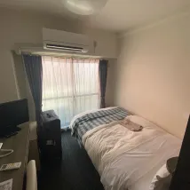 Close to a subway station and opposite a supermarket with surrounding konbinis. Good facilities/amenities e.g. microwave, extra sink, table and chairs. Only downside is small and a bit outdated but for the location, price and amenities I would recommend!