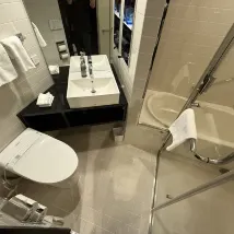 A direct bus from Narita Airport gets you to the hotel entrance in about 1.5 hours. The hotel's location is truly unbeatable – Don Quijote is right downstairs, and you'll find FamilyMart and 7-Eleven convenience stores right next door. Ginza is just a ten-minute walk away, making it incredibly convenient for dining and shopping. For such a prime, high-value location, the room itself is impressive: it features a separate wet and dry bathroom area and ample space to open two 28-inch suitcases. The staff were also very good. I would definitely choose this hotel again for my next trip.