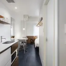 Cozy hotel within 5 minutes walking distance to train entrance. Washing dryer in the room makes laundry service a breeze.