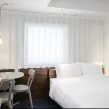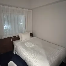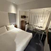 Room is small but that’s expected in Japan. Booked 2 rooms and one was a corner room which is slightly bigger. The washer/dryer was really convenient and they provided detergent as well, it takes about 2h40mins for one cycle. Location was great and they have free coffee and water bottles in the lobby area. Amenities are placed beside the reception and it’s self service. Cleaning services are optional with a fee, but you can request for towel changes and clearing the dustbin by sticking a magnetic label on your door. Overall, very satisfied.