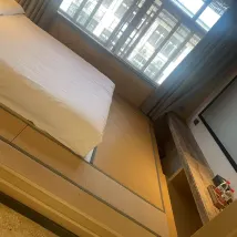 Downside to the stay - they only provide one time use towels which I personally do not think it is very useful as it could barely absorb anything. The rubber attached to the toilet door in my room was missing causing the water to leak out of the toilet when we take a shower and we did not have any floor mats to clean up the mess. We could only use the smaller one time towel provided by the hotel, which again it could barely absorb anything.