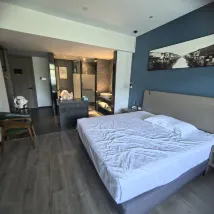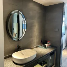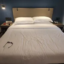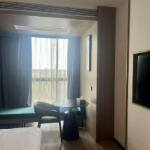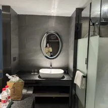 However, there were several drawbacks. The air conditioning unit was quite loud and affected my sleep. There was no hair conditioner provided, only shampoo and shower gel. The complimentary toiletries were of poor quality, with the toothbrush being particularly stiff, and the pillows were also quite hard. Furthermore, the service from the staff lacked enthusiasm.