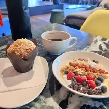 My gosh that was the prettiest hotel I’ve ever stayed at! Amenities were wonderful, staff was engaging and hardworking, and very good parfait breakfast. Beautiful rooms, convenient location, I will stay there again soon!