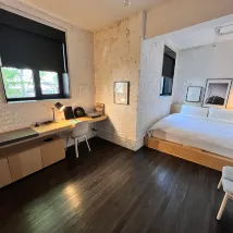 The rooms are nicely designed, and the hotel is in a quiet location behind the business street and within walking distance of the subway station. There is a supply room for guests too.