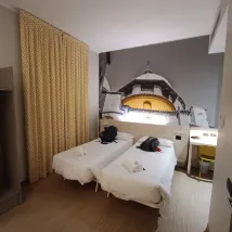 An ok overnight stay. Room was spacious, bed comfy but the shower was very mouldy and there was cigarette ash all over the balcony floor. We had to use a side entrance, into what appeared to be an apartment block, with the hotel using one floor. The lobby to the apartment block smelt like drains. Service was good though, they agreed to store a suitcase for us for 4 days prior to our stay whilst we were travelling elsewhere in Italy which was appreciated