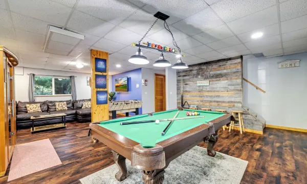 In the event that space, comfort, conveniences, and fun what you are searching for, you've thought that it is here! Rambling 7 bedroom with 3 full bathrooms, fireplace, hot tub, loft, game room with pool table, foosball, multiple board games. Partake in the solaces of drafted focal air and hotness! large dining table, savvy TV's for streaming your most loved application! Enormous kitchen completely loaded with cookware. 18 can sleep comfortably in our house. Sauna will available from March.