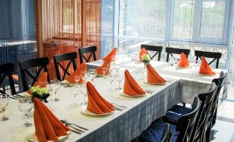 On-site canteen. While the café offers a wide range of dishes of Russian and European cuisine.