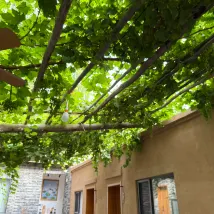 Nice guesthouse with a peaceful courtyard and overhanging grapevines. Located in the grape valley it is convenient to walk around the scenic area. A few nice restaurants and cafes are close by as well. They offer a simple but delicious breakfast every morning for guests