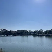 The light in the bathroom was too dark and the toilet was stained badly but it’s cleaned. The room itself was just ok for a night but the location is perfect! Right in front of the hotel, there’s a lake and you can have a walk around. The view is quite nice.