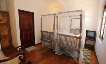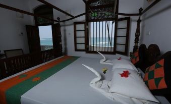 The Villa Hotel - Unawatuna compares favorably with its location in the center of the beach, the opportunity to have breakfast on an open shady terrace overlooking the ocean. The hotel building is made in the traditional Sri Lankan style, the doors, windows and cornice are inlaid with wood - a very pleasant atmosphere. Breakfast is modest but sufficient. The hotel staff is attentive and caring. The hotel is not for a relaxing holiday, because the restaurant plays loud rhythmic music from lunch until late in the evening, more suitable for a disco than for dinner. The room on the first floor overlooks the restaurant - it could be a staff room but not a guest room, don't take it.