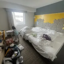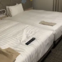 Lovely hotel welcoming with complimentary drinks 24hrs. Next to Lawson conveni stall and provide free shuttle bus to/fro Disneyland/sea. 10mins walk to bigger suppermarkets and eateries. Room space is better compared to normal Japan hotel room size considering 2 double bed although we have only 2 person. Am happy with the 3nighrs stay given above and washing machine reasonable charge at 300jpy and dryer at 100jpy. Can be improve to have luaggage weighing machine. They're kind to received items on behalf abd provide courier service at front counter from what I know. Lastly, it's convient 3muns walk to take airport limo bus from next door Hyatt Hotel. Thank you!