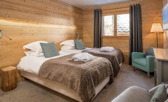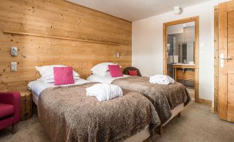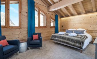 Cosy chalet "Chalet Acajuma". 1 km from the centre of Val d'Isère. In the house: sauna, hot tub, storage room for skis. Parking at the house. Shop 1 km, restaurant 1 km. Ski lift 1 km, ski school 1.5 km. Please note: the photograph shows a typical example. "Acajuma", 6-room chalet 230 m2 on 4 levels. Tasteful and wooden furniture furnishings: luggage room. Upper floor: 2 rooms, each room with 1 double bed (1 x 160 cm, length 200 cm), bath/WC and TV (flat screen). 3 rooms, each room with 2 beds and bath/WC. Exit to the balcony. 2nd upper floor: living/dining room with 2 sofabeds, open-hearth fireplace, dining table and TV (flat screen). Exit to the balcony. Open kitchen (oven, dishwasher, 4 ceramic glass hob hotplates, toaster, kettle, freezer, electric coffee machine, raclette grill). Electric heating. Facilities: washing machine, dryer. Internet (WiFi, free). Parking. Please note: smoke alarm.