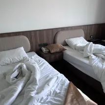 The front desk was efficient, and the staff were polite but somewhat formulaic. The rooms were well-planned, clean, and the bedding was clean and comfortable. However, the amenities were a bit dated: the air conditioning was noisy, the hot water in the bathroom was inconsistent (it took a long time to get hot), and some furniture showed signs of wear. Free WiFi was available throughout, but speeds dropped significantly during peak evening hours.