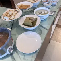 The breakfast was a standard buffet, offering a comprehensive selection of Chinese and Western dishes, but the quality of the ingredients was average. The hot food area wasn't well-maintained, and the coffee machine malfunctioned several times. We commend the staff for their prompt replenishment and efficient closing times. Room service was slow to respond (approximately 40 minutes) during other hours, and the food was a bit salty.