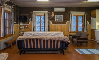 In the living room, there is a big traditional baking oven. Own fireplace in both bedrooms. You can sense old house -feeling and grandma’s house -feeling in the building. Pets allowed at extra fee, which is charged per reservation.