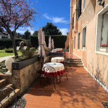 The hotel is relatively small overall, with a small garden where you can have breakfast. The streets behind the hotel are very quiet. There are supermarkets, ice cream shops, pizza shops and bread and cookie shops along the river. I recommend an ice cream shop on the corner, it's great