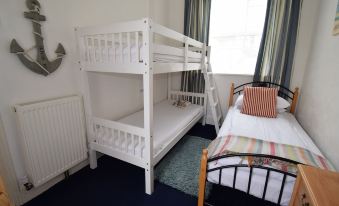 Inspired by our love of the sea, the apartment is decorated with lovely coastal themes and is equipped with kitchen, lounge, dining room, 3 bedrooms and 2 bathrooms. We provide full cooking facilities, TV, DVD player, central heating, plus white bed linen and fluffy towels. We can also provide a travel cot, bed guard and high chair for those with young children.