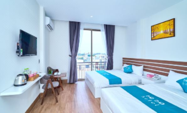 The hotel has a good service. There's bike parking. The Wi-Fi works great. I stayed at the hotel for a week and it worked perfectly. There's a rooftop, so you can get some fresh air and look at the city from above. The bed isn't for the faint of heart. It's hard, but for me, it's a comfortable bed. There's a table and chairs in the room, so you can sit by the open window and read a book. There's no hot water, or at least I didn't figure out how to turn it on. But overall, it's fine. Cleaning was regular. Mine was cleaned twice. It was a pleasant stay in the room over the course of a week. The market and many shops are a plus. Overall, the area around the hotel is very nice. I found a technician to fix my laptop. I went to a dental clinic, and all of this is within walking distance of the hotel. I couldn't hear my neighbors even though the hotel was 90% full, which was also a plus. I can't think of any real downsides. The staff was polite.