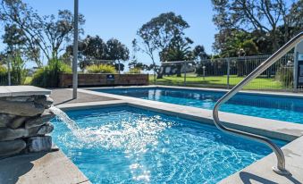 We’ve just come to the end of our three night stay and it was absolutely incredible. We stayed in a self-contained cabin that very easily fit our family of 7 and had a beautiful bathroom and kitchen area. If we needed a full oven the communal kitchen was right next door however, we did have two cooking elements in our cabin which was perfect for us. The park facilities were great. The kids loved the playground and spent ample time there. The pool was lukewarm so too cold for us to swim at this time of year but one of our kids did have a quick dip to try it out and he had fun. The camp is right on the shores of the beach which is absolutely stunning. I woke up early one day to watch the sunrise over the beach and then did the Southern Loop walking track through the bush and farmlands with stunning coastal views along the top. The start and end of the walk is at the entrance to the campground which is amazing. We didn’t have any luck with fishing but the weather wasnt great. We thoroughly enjoyed our stay here and will definitely be coming back.