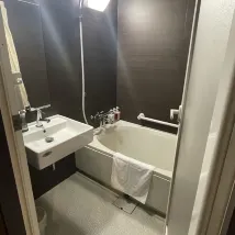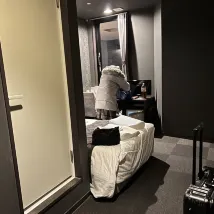The room is indeed not big. It would be a bit restrictive for two people to move around in the room at the same time. The bathroom door opens directly in the way and can bump into it accidentally. However, the facilities are complete, neat and clean, and it has good reviews. It is also relatively close to the JR station, you can get there within 10 minutes on foot.