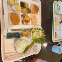 When a typhoon hits Wakayama, there are no people on the street. There is a 711 behind the hotel, which is very convenient. The room is larger than expected, with a separate toilet and washroom. There is a small window, you can see the outdoor scenery, it can be opened for ventilation, and there is no wind or rain, which is perfect for typhoon days. We brought our baby to stay and ordered two breakfasts. The grandpa at the front desk directly gave us six breakfast coupons for two days. We were so touched, especially when we rushed here in the wind and rain. The breakfast is very rich, and I like the cold tofu and curry rice the most. There is also a self-service drink machine, and the Calpis soda is great! Will stay here again if I have the chance!