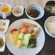 The breakfast selection was very extensive and included many local specialties, such as salted plums (umeboshi) and whitebait. I recommend trying them at the hotel first to see if they suit your taste; that way, you'll have a better idea when buying them at souvenir shops outside. The Western breakfast options, such as bread, were quite standard, but the Japanese options were fantastic.
