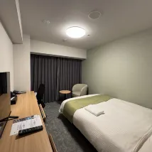 This was one of the more spacious rooms we've stayed in at a Daiwa Roynet Hotel in Japan. Its location is directly opposite Wakayama Castle, though it's a bit of a distance from the JR station. Due to a flight delay, we didn't arrive in Wakayama until past midnight, and with no more buses running, we ended up walking from the JR station to the hotel, which took us about 20 minutes. However, there's a bus stop right outside the hotel, making it quite convenient under normal circumstances. There's also a convenience store on the ground floor, and the building itself is relatively new. In the morning, you can enjoy views of Wakayama Castle right from your window as soon as you open the curtains. Overall, it's a very good option.