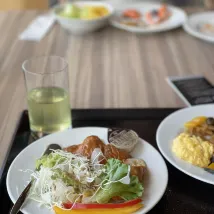 Breakfast on the second day was served at a Japanese-Western fusion restaurant downstairs. The food selection was extensive, and the quality was excellent—truly impeccable. There's also a soba noodle shop within the building, which was delicious and reasonably priced. I had read reviews previously suggesting there weren't many dining options near the hotel, but actually, there are several restaurants and a convenience store right inside the building, which was fantastic.