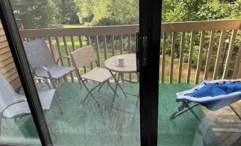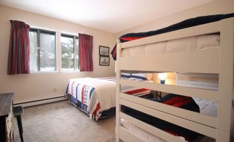 2 bedroom condo cozy and spacious condo in wooded area with beautiful views. Sleeps 6-10. Close to skiing, restaurants and shops. Parking in front of building. Bedrooms and full bathroom upstairs, 1/2 bath and large living space main level. Main level has a couch that pulls out to a very comfortable double bed. . Pool access in complex in summer.About pets:Pets allowed: dogs and cats less than 50 lbs per pet (limit one pet total).About checkOut:Check out before 11:00 AM.About children:Children allowed: ages 0-17.About checkIn:Check in after 4:00 PM.About smoking:Smoking is not permitted.About minBookingAge:Minimum age to rent: 18.About events:No events allowed.