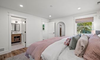 💫Primary Suite: Enjoy a restful night in the relaxing King-sized bed, complemented by a large en suite bathroom with heated floors and a rainfall shower.