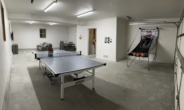 We enjoyed having multiple levels, the game room and hot tub as well. Overall, we would stay here again as it was a nice space and cleaned well. Loft beds were not comfortable but works just fine for kids. Garage/game area could use some paint on floor to make it look nicer but again we had a great time just having that space with games, ping pong, etc...beautiful bathrooms and nice trail down to the lake. Furniture seemed new in living room. Loved having a fire place. We were not disappointed with this house and would recommended it.