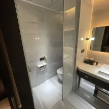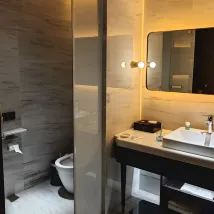 It’s a really beautiful hotel. Very spacious. However the location isn’t very good it’s a bit far from everything so difficult to get taxis and to get food deliveries there. The room was really great even though the shower was clogged and flooded the bathroom the staff was very helpful and had it fixed and cleaned