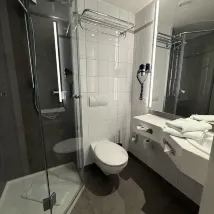 The hotel is located opposite the small square of the train station, making travel convenient. The hotel has a long history and the facilities are well maintained. When checking in, the hotel proactively informed us that room cleaning would not be provided (probably because of Sunday), and for this reason, each person was given a bar drink coupon as compensation. While allowing customers to participate in energy conservation and environmental protection, the hotel can proactively provide other services as compensation, thus better maintaining customer relations.