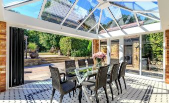 "Charming 16th-century thatched cottage with 2 king or single bedrooms and 1 double bedroom. It has an open-plan living area, a picturesque orangery, and is set on 2.5 acres of land, including gardens, woodlands, and a tranquil stream. Additionally, there are several patio areas for outdoor dining, as well as a sunken trampoline for the kids. The cottage offers a blend of historic charm and modern comfort and is located close to many attractions."About pets:Pets allowed: limit 2 total.About children:Children allowed: ages 0-17.About smoking:Smoking is not permitted.About events:No events allowed.