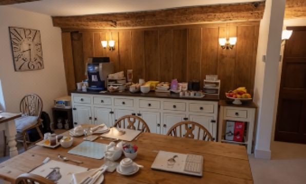 What a find ! Gorgeous 16th Century Farmhouse B&B. Fantastic that the wonderful hosts Sharon & Paul are fully dog-friendly - as I was on a solo short break with our younger dog, we were both made welcome. Lovely clean, nicely decorated spacious room. Bonus of a fridge with water & a small glass bottle of proper milk ie not sachets etc, to go with the well stocked courtesy tray. Lots of little touches, like various "I've forgotten" items, wine glasses, glass tumblers & corkscrew ... even a hair "turban" for use after washing your hair ! Nice shared outside seating area dor use by my & neighbouring room.