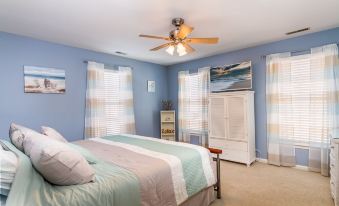 Enjoy free wireless internet, Xfinity cable, or login to your streaming service on the 60" Smart TV in living room and smart TVs in every bedroom. The master bedroom has a king size bed with private full bathroom, second bedroom a queen size bed, third bedroom has a full over full bunk bed with a twin trundle bed underneath. Extra twin fold out platform bed with new mattress if you need it! Sleeps 10 comfortably, laundered sheets are available upon request. Please bring your own towels.