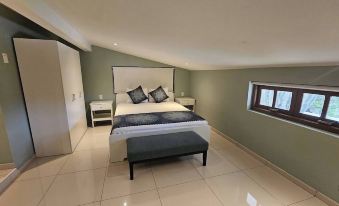 This apartment is located on the first floor and is accessed by a spiral staircase. You have 105m2 of space available and also a private balcony overlooking the table mountain. It is very suitable for families, large group of people, expats but also guests who would like to have enough space for during their stay.