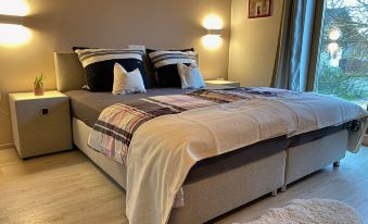 The house features two spacious bedrooms equipped with high-quality furniture, providing a quiet retreat for restful nights. The large couch in the living room can quickly be extended to provide an additional sleeping option. A guest toilet ensures additional comfort and privacy for your visitors.