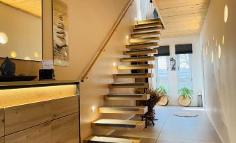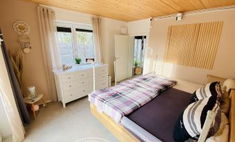 Das Haus hat uns als Familie außerordentlich gut gefallen - ein perfekter, nachhaltiger und grüner Wohlfühlort. Das Haus war sauber, sehr harmonisch eingerichtet, die Küche (einschließlich Kaffeevollautomat) ließ keine Wünsche offen und die Osmose-Anlage hat perfektes Wasser geliefert. Auf der Dachterrasse haben wir schöne Sommerabende verbracht. Unser besonderer Dank gilt der überaus sympathischen Gastgeberin Helga, die nebenan wohnt uns für Fragen bei Bedarf immer zur Verfügung stand.