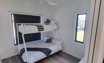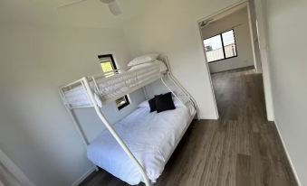 2 bedrooms: 3 bunk beds and 1 queen bed